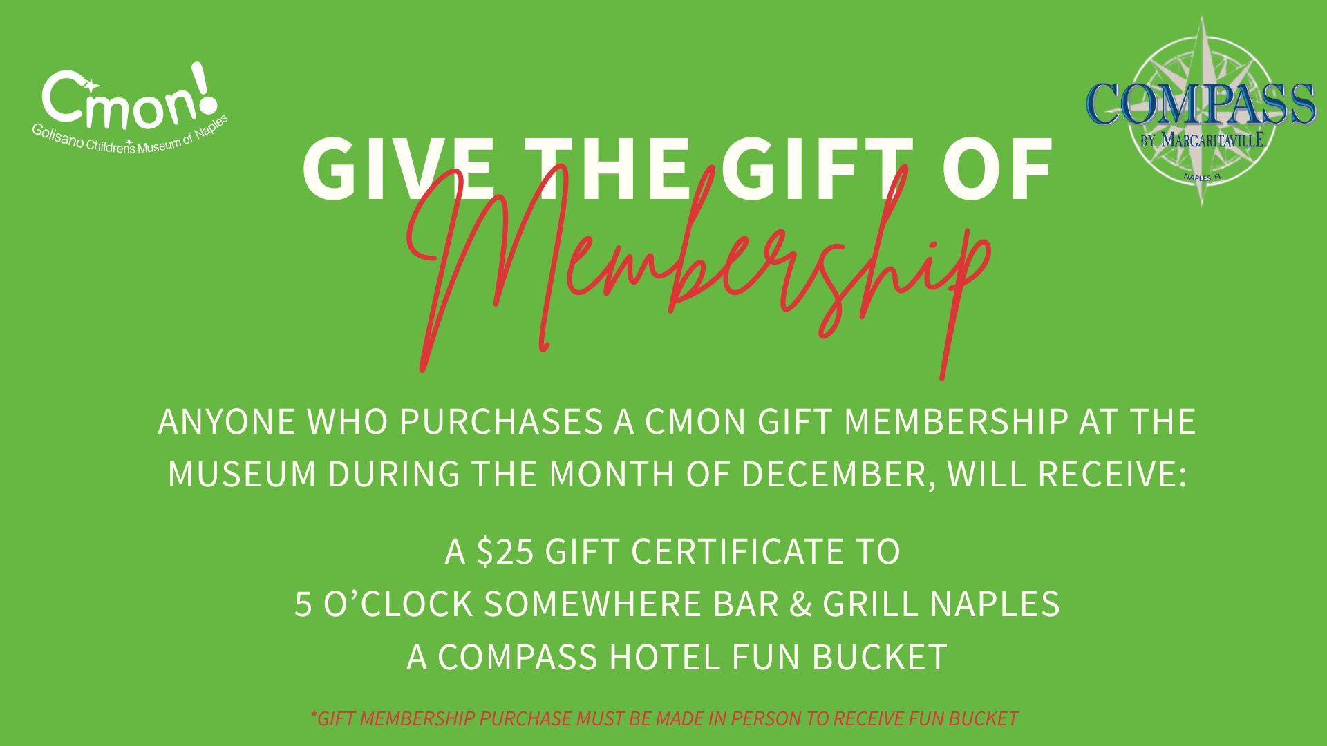 Please note that this membership can only be purchased onsite at CMON and EBT/SNAP/WIC card must be presented at the time of purchase.